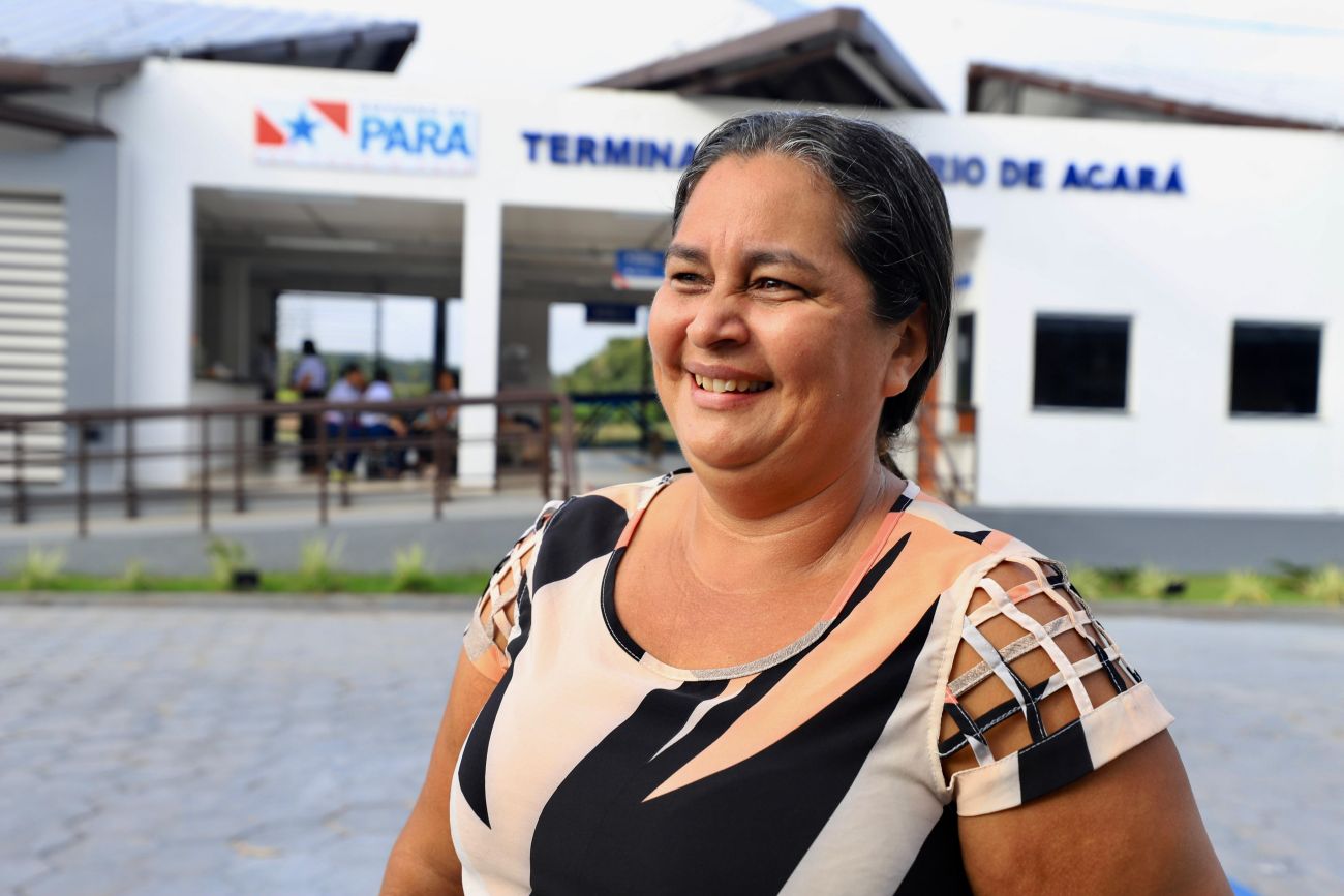A obra foi realizada conforme as normas da Agência Nacional de Transportes Aquaviários (ANTAQ), órgão que regulamenta portos de todo o Brasil. "Hoje 115 municípios do Estado do Pará vivem e precisam de terminais hidroviários, este é o 27º que entregamos e esperamos entregar muito mais para o povo do Pará. O governador Helder Barbalho tem dado prioridade máxima ao setor", destacou o secretário da CPH, Josenir Nascimento. Ana CileneAna Cilene Mathias é ribeirinha e mora com uma parte da família no Acará. Ela conta que o novo terminal vai facilitar o transporte dos pais, que moram em outro município, além de garantir segurança deles durante as travessias feitas com bastante frequência. "A gente precisava muito desse terminal, nós chegávamos e não tínhamos onde guardar o barco, saíamos pela lama, caindo com as nossas produções. Esse terminal é muito importante para nós, que moramos no Acará, até porque eu sei o sofrimento que meus pais, que são idosos, passavam para chegar até aqui, ficávamos escolhendo um local para tirá-los rabeta. Hoje a gente se sente feliz em ver esse terminal, estamos comemorando", conta.