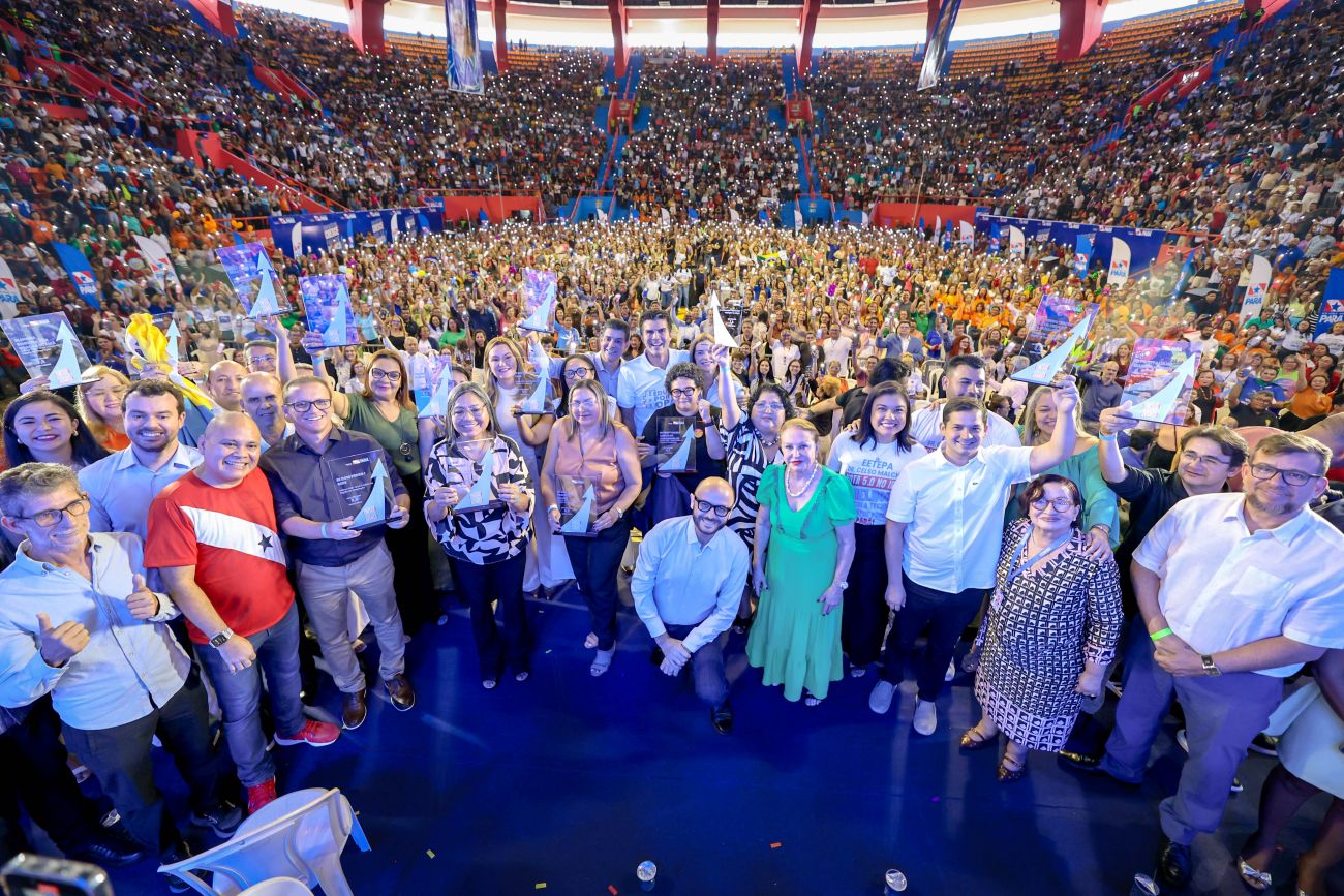 Programa "Escola que Transforma" repassará R$ 373 milhões para servidores da educação que alcançaram metas estabelecidas tendo como base, o resultado do Ideb 2023 Marcada por alegria e emoção, a Secretaria de Estado de Educação do Pará (Seduc) reuniu professores, servidores, estudantes, pais e responsáveis na manhã desta segunda-feira (16). Com um público de mais de 10 mil pessoas, o Governo do Estado anunciou a data do primeiro repasse do maior programa de bonificação de servidores, o "Escola que Transforma", a ser pago no dia 15 de outubro. O programa é um investimento do Estado no reconhecimento e valorização dos servidores da rede estadual de ensino, que, a depender do alcance das metas estabelecidas pela Seduc no Índice de Desenvolvimento da Educação Básica (Ideb), receberão até 3,5 salários, um investimento total de R$ 373 milhões. Neste semestre o Pará teve um crescimento histórico no Ideb, saltando da 26ª para a 6ª posição no ranking nacional. Além do tão aguardado anúncio do bônus do Ideb, no evento realizado no Mangueirinho, o Governo do Estado anunciou o adiantamento do pagamento do abono dos precatórios do Fundef para o dia 20 de setembro para o grupo 1 e até dia 25 para o grupo 2. Durante o evento, 2.769 estudantes dos municípios das Diretorias Regionais de Ensino (DREs) de Belém, Ananindeua, Abaetetuba, Santa Izabel do Pará e Castanhal receberam o cheque do programa Bora Estudar. Com a entrega, o Governo do Estado, por meio da Seduc, alcançou o número de 11.499 estudantes beneficiados, um total de R$ 114,9 milhões transferidos para as famílias.