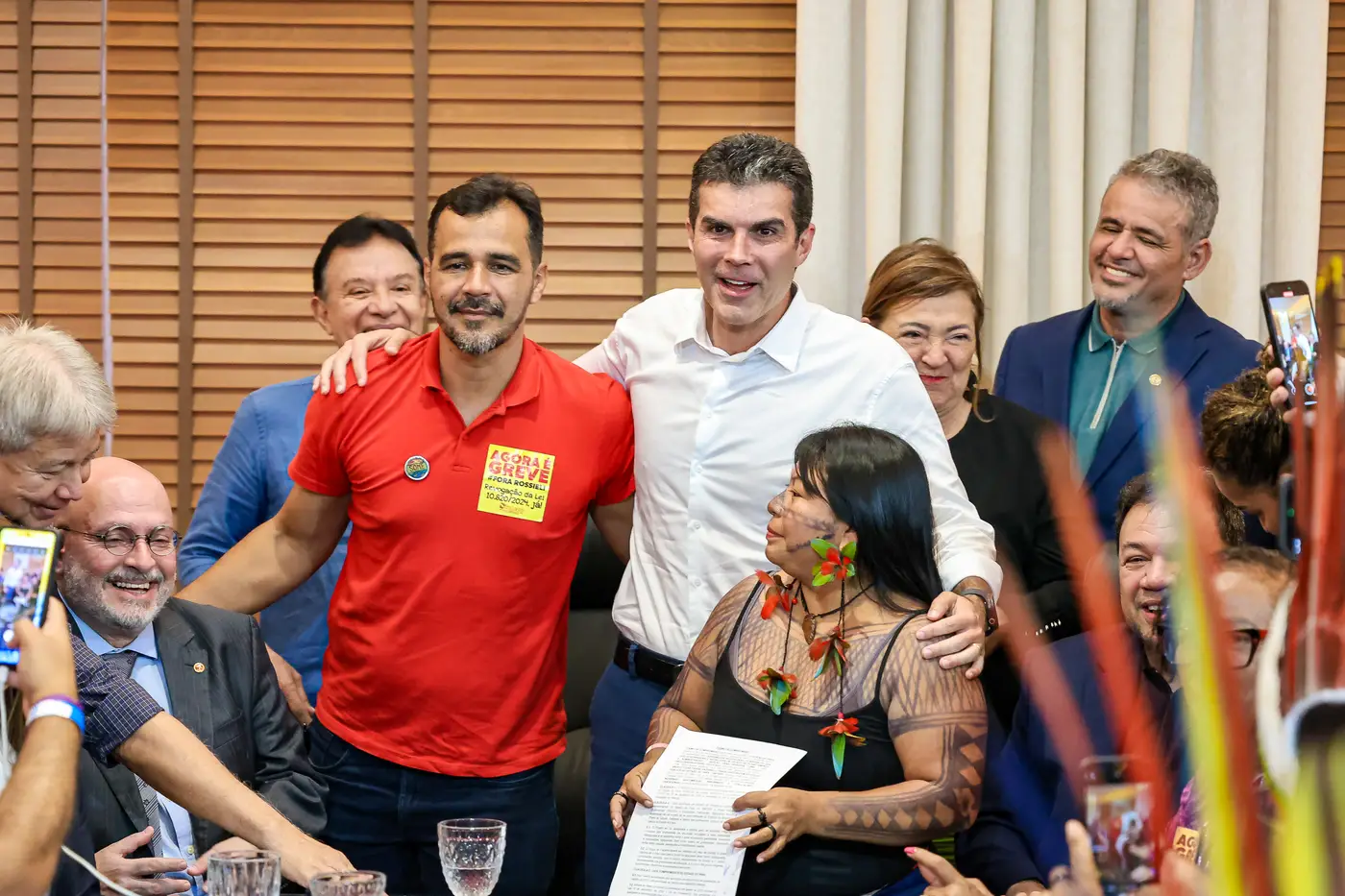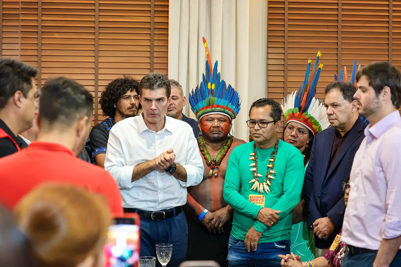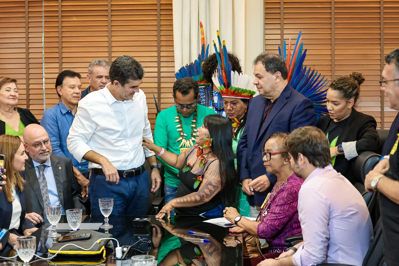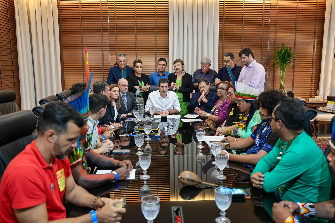 Documento oficial foi assinado na tarde de quarta-feira (05), pelo governador Helder Barbalho e representantes dos movimentos. Na oportunidade, o governador reafirmou o compromisso de seguir com o Projeto de Lei (PL) que estabelece as diretrizes da Política Estadual de Educação Escolar Indígena  O governador Helder Barbalho e representantes do Sindicato dos Trabalhadores em Educação Pública do Pará (Sintepp), e lideranças indígenas, quilombolas e ribeirinhas que ocupam o prédio da Secretaria de Estado de Educação (Seduc) assinaram, nesta quarta-feira (05), um Termo de Compromisso para fim das manifestações e elaboração de um Grupo de Trabalho (GT) para avançar nas reivindicações. O documento foi assinado no gabinete do governador, no Palácio dos Despachos, sede do Poder Executivo Estadual paraense. O acordo foi firmado após o Governo do Estado confirmar que vai encaminhar à Assembleia Legislativa (Alepa), Projeto de Lei (PL) visando revogar a Lei n° 10.820, de 19 de dezembro de 2024.  Pelo acordo, o Projeto de Lei vai prever a criação de um Grupo de Trabalho (GT) composto por representantes do Estado do Pará, do Sintepp e povos indígenas, quilombolas, ribeirinhos e populações tradicionais, objetivando discutir a elaboração de um projeto de lei para instituição do Estatuto do Magistério e Plano de Cargos, Carreiras e Salário dos profissionais públicos da educação básica do Estado do Pará. Também consta no acordo que o PL vai garantir a Política Geral de Educação Indígena, inclusive dos profissionais de educação vinculados a esta modalidade, assegurada a lei específica sobre o tema, envolvendo quilombolas, ribeirinhos e populações tradicionais. Bem como tratará de gratificações, objetivando evitar efeito cascata e assegurando a irredutibilidade salarial.  Durante a assinatura do documento, o governador Helder Barbalho destacou que o gesto é uma demonstração pública do Estado em avançar no diálogo com a categoria e os povos tradicionais. O governador pediu a contribuição das lideranças indígenas no Projeto de Lei (PL) que estabelece as diretrizes da Política Estadual de Educação Escolar Indígena. "Nós queremos que o Estado do Pará tenha a Lei Estadual de Educação Indígena e eu quero a participação de vocês, quero pedir a colaboração de vocês, nesse debate, nessas discussões, para que a gente possa ter uma lei robusta e a melhor lei que garanta direitos e acima de tudo, que garanta as especificidades que a educação indígena tem, para que a gente possa também enviar para a Assembleia Legislativa", disse.  O chefe do Poder Executivo Estadual paraense reafirmou o compromisso com a educação e ponderou que o Estado avançou com investimentos em torno de R$ 9 bilhões em 2024. Afirmou que o Governo do Pará investiu 31% do orçamento na educação, um índice acima do que os Estados são obrigados a investir, que é de 25%. "Nós somos o Estado do Brasil que mais investe em educação. Só vamos conseguir chegar em todas as escolas com o padrão de qualidade que nós queremos, se a gente tiver capacidade de dialogar. Por um lado, com a valorização dos professores, a gente precisa ter capacidade também de dialogar a qualidade da educação", ponderou o governador. "Porque se nós ficarmos só com o olhar voltado para a discussão remuneratória e salarial, nós não vamos ter capacidade de implementar a qualidade do ensino, que é o que todos nós queremos. Os professores querem a qualidade do ensino, querem a qualidade das escolas, por isso que a gente quer ter uma conversa na construção com vocês, que ela seja ampla, que possa debater de maneira transversal tudo aquilo que envolve a qualidade do ensino ofertado aos nossos alunos", ponderou.  Manifestantes indígenas irão contribuir na Política Estadual de Educação Escolar Indígena Após o pedido do governador Helder Barbalho, as lideranças indígenas da Região Oeste do Estado confirmaram que irão contribuir na confecção do Projeto de Lei (PL) que estabelece as diretrizes da Política Estadual de Educação Escolar Indígena. "Queremos garantir nossa participação neste Projeto de Lei específico porque esperávamos por este momento. Vamos sentar e discutir o que precisamos reduzir, o que o Governo pode ceder. O momento aponta para isso. Para o diálogo. Para a mesa de negociação, para construir uma política sólida para que ninguém perca neste novo momento da educação pública paraense", ponderou Poró Borari, representante do povo Borari, no território Maró, localizado na Região Oeste do Estado. Também participaram da reunião, a vice-governadora Hana Ghassan; o procurador-geral de Justiça, César Bechara Nader Mattar Júnior; a coordenadora-geral do Sintepp, Conceição Holanda; o coordenador estadual do Sindicato, Beto Andrade; o presidente da Assembleia Legislativa do Estado (Alepa), deputado Francisco Melo, o Chicão, além dos deputados estaduais Tiago Araújo, Maria do Carmo, Livia Duarte, Torrinho Torres, Iran Lima, Aveilton Souza e Eraldo Pimenta. |